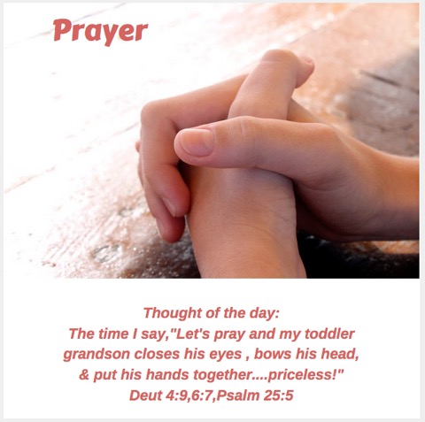 It only lasts a few seconds but he understands that we are being thankful to God….in time, he will too.