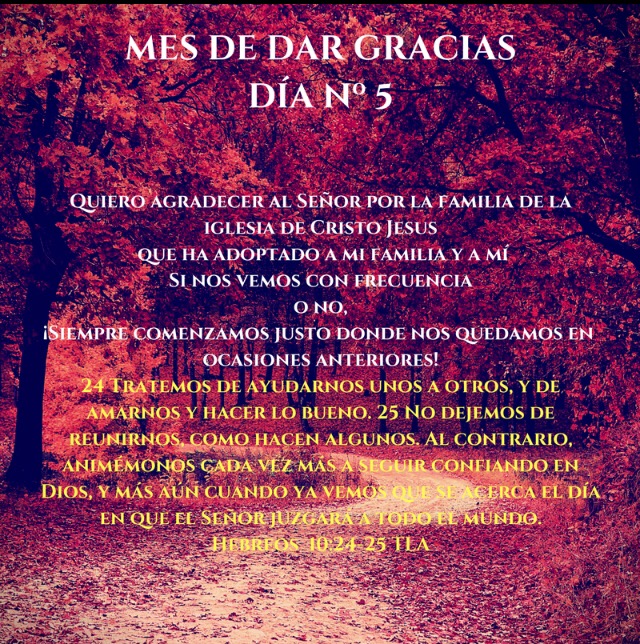 November 8, 2017 by oscar.roca.Author Mes de Dar Gracias Día 5 Share this:Share Click to share on Facebook (Opens in new window) Facebook Click to share on X (Opens in new window) X Like Loading...