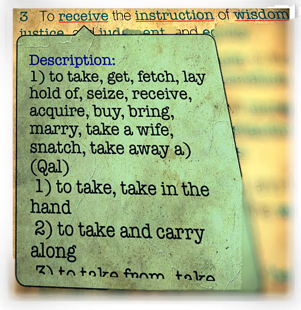 - An example of this would be—Proverbs chapter 1, Going through this, these words are what grabbed a hold of my mind this time around: