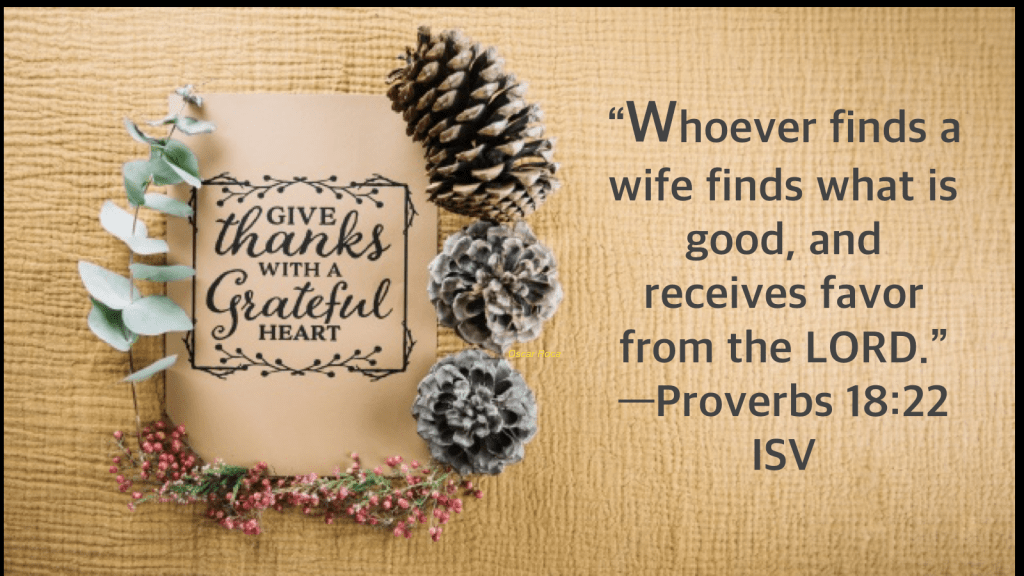 Today, I’d like to thank God for the wife of my youth. She has been with me through thick and thin, in darkness and light. She has seen my worst and has been the reason for my best.
