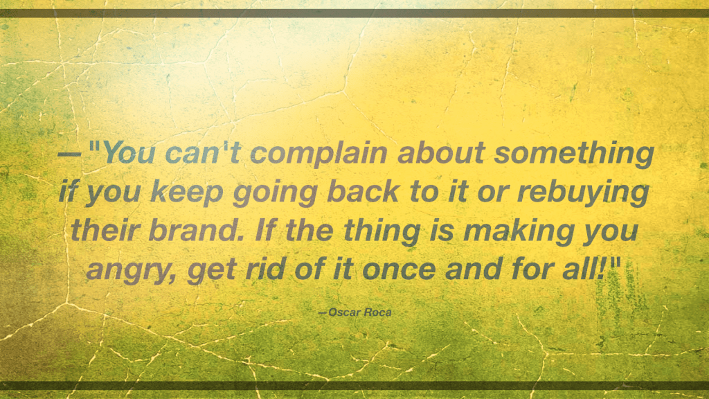 —You can’t complain about something if you keep going back to it or rebuying their brand. If the thing is making you angry, get rid of it once and for all!