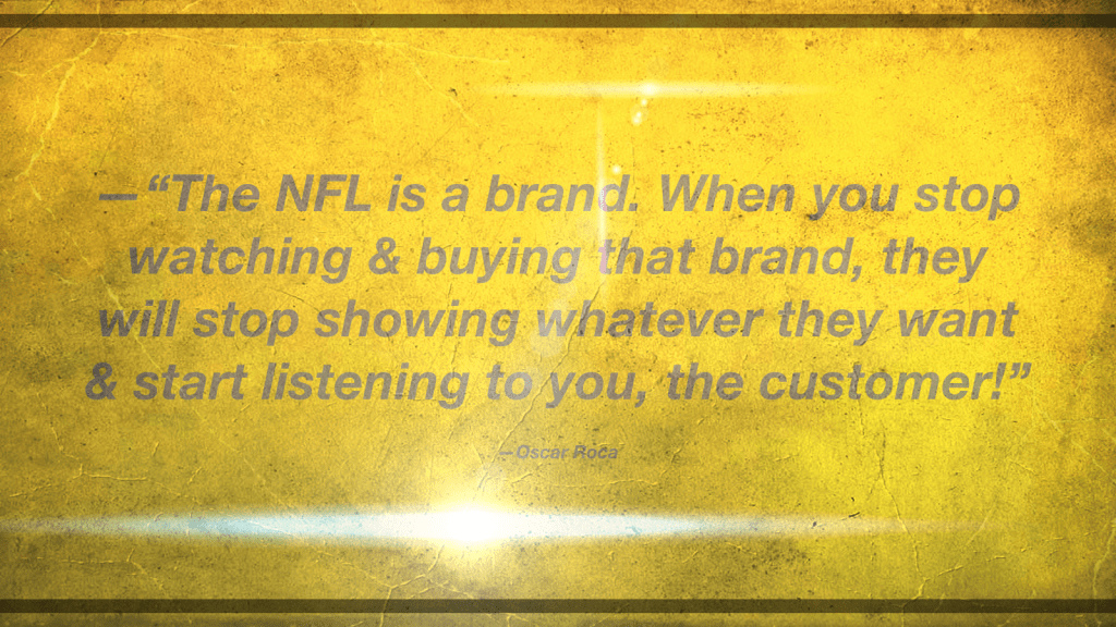 —The NFL is a brand. When you stop watching & buying that brand, they will stop showing whatever they want & start listening to you, the customer!