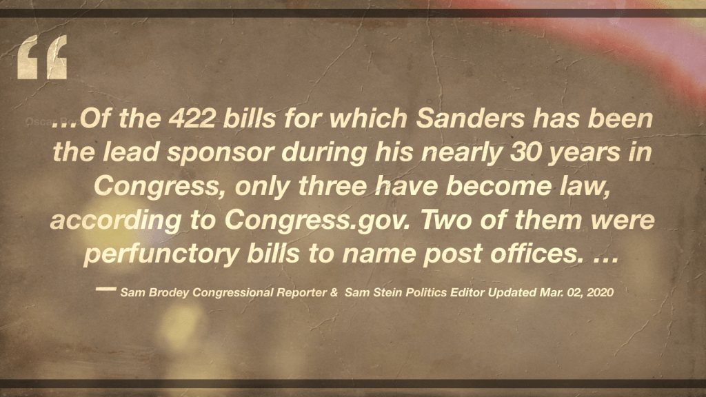 Bernie has never really done anything in Congress to set himself apart from the group in an extraordinary way.