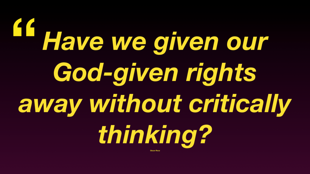 —We also, as a society, have allowed others to think for us. Whatever the WHO (World Health Organization), CDC (Centers for Disease Control), or UN (United Nations) or governing bodies of each country say, we take it as solid truth!