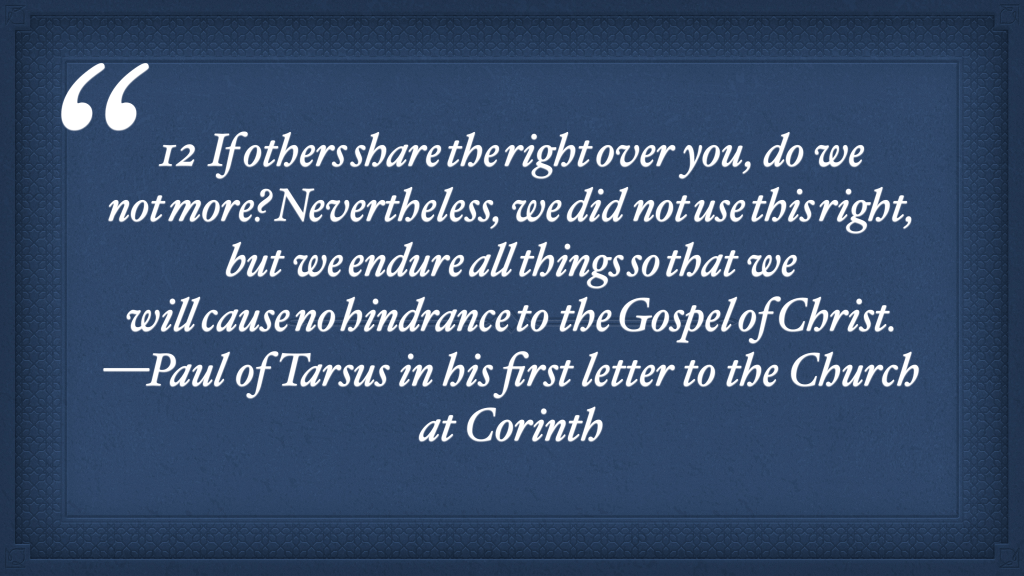 Paul mentions that he worked so that it wouldn’t be a hindrance to people by giving to him. In other words, he said, “I could have taken from the offerings of the churches God gave me to start, but I didn’t so that you could be like me and work for a living, giving the gospel free of charge!” ( I Corinthians 9 & 2 Thessalonians 3 ).
