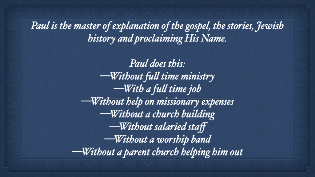 I’ll explain. Paul was a tentmaker. He worked all day and witnessed to whomever was there working alongside of him. Once the co-workers committed their lives to Christ, he would then disciple them. All from the workplace.