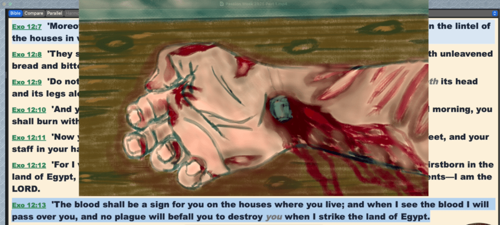“The blood of the Passover lamb will serve as a sign for you on the homes where you reside. When I see the blood, I will pass over you, and no plague will harm you. This sign will be marked by the blood placed on the top and sides of your doorframes. As Israelites from across the known world journeyed to Jerusalem for the Passover pilgrimage, they recognized the blood as a sign, though many did not fully grasp its deeper meaning.” – Os Roca…– Os Roca
